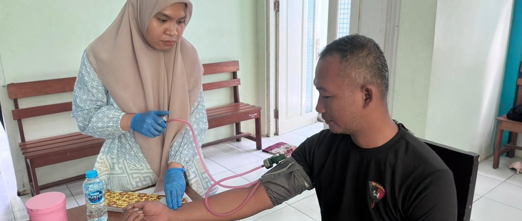 Dua personel Kompi 1 Batalyon B Pelopor Satbrimob Polda Maluku, yakni BRIPKA Dwi Kurnianto dan BRIPDA Frejon Lumoly, melakukan aksi kemanusiaan dengan mendonorkan darah mereka bagi salah satu pasien yang membutuhkan di RSUD Masohi, Kamis (2/10/2025).