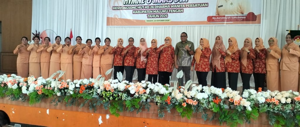 MASOHI, MANUSELANEWS.COM. - Menyambut Hari Ulang Tahun (HUT) ke-26, Darma Wanita Persatuan (DWP) Kabupaten Maluku Tengah menggelar lomba paduan suara hymne dan mars DWP, Kamis (23/10/2025), di Masohi.