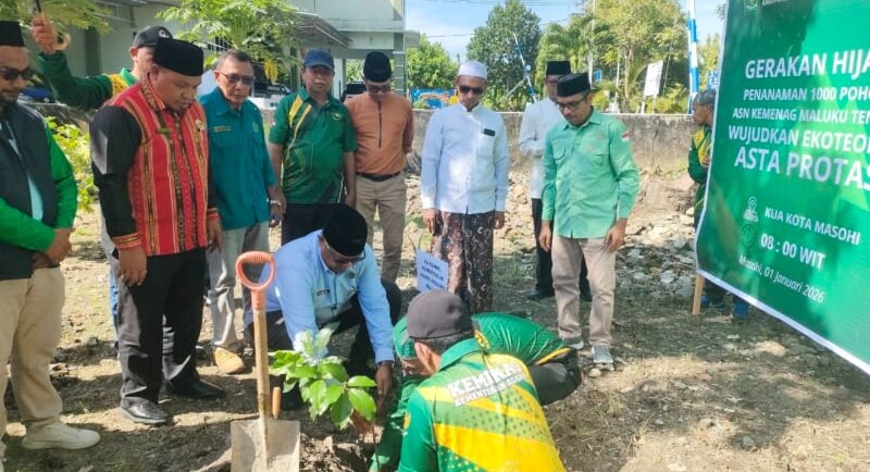Penegasan tersebut disampaikan Yamin saat menghadiri Gerakan Penanaman 1.000 Pohon di Kantor Urusan Agama (KUA) Kecamatan Kota Masohi, Kamis (1/1/2026).