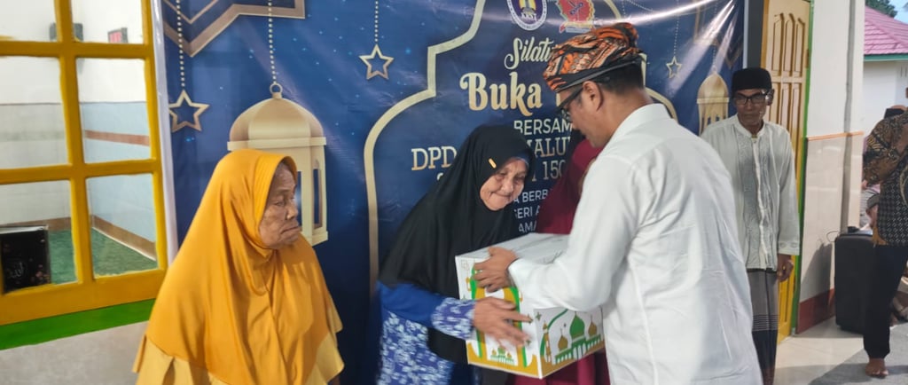 Tak sekadar menjadi ajang berbuka, kegiatan ini menjelma sebagai momen penuh makna untuk menebarkan kasih dan kepedulian di bulan suci Ramadan. Dalam suasana yang sarat kehangatan itu, Sukri Ury menyerahkan bingkisan Lebaran kepada 25 janda lansia, serta menyalurkan 8 sarung bagi pengurus masjid dan anak-anak yatim.