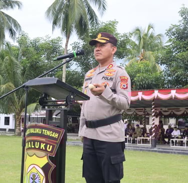 Apel tersebut dipimpin langsung oleh Kapolres Maluku Tengah AKBP Hardi M. K., S.I.K., M.H. selaku Inspektur Apel, dan dilaksanakan secara serentak di seluruh wilayah Indonesia sebagai bentuk kesiapan nasional dalam memberikan pelayanan terbaik kepada masyarakat selama momentum Natal dan Tahun Baru (Nataru).