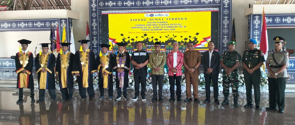 MASOHI, MANUSELANEWS.COM. – Sebanyak 158 sarjana Universitas Dr. Djar Wattiheluw (Unidjar) resmi dikukuhkan dalam upacara wisuda yang digelar pada Selasa (11/11/2025). Para wisudawan tersebut berasal dari Program Studi Administrasi Negara, Administrasi Niaga/Bisnis, serta Ilmu Hukum yang untuk pertama kalinya meluluskan mahasiswanya.
