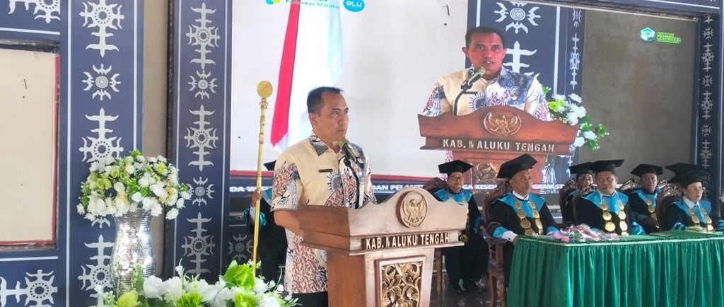 MASOHI, MANUSELANEWS.COM. – Staf Ahli Bidang Pembangunan dan Kemasyarakatan Setda Kabupaten Maluku Tengah, Zahlul Ikhsan, mewakili Bupati Maluku Tengah menghadiri Wisuda dan Pengambilan Sumpah Profesi Perawat Politeknik Kesehatan Kementerian Kesehatan (Poltekkes Kemenkes) Maluku, yang berlangsung di Baileo Sukarno, Pandopo Bupati Masohi, Kamis (23/10/2025).
